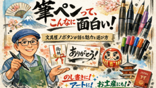 筆ペンって、こんなに面白い!文具屋ノボタンが語る魅力と選び方みなさん こんにちは、文具屋のおやじ ノボタンです。筆ペンって聞くと、みなさんはどんなイメージを持たれますか?「のし袋に名前を書くときだけ使うもの」「年賀状や芳名帳くらいかな…」と...